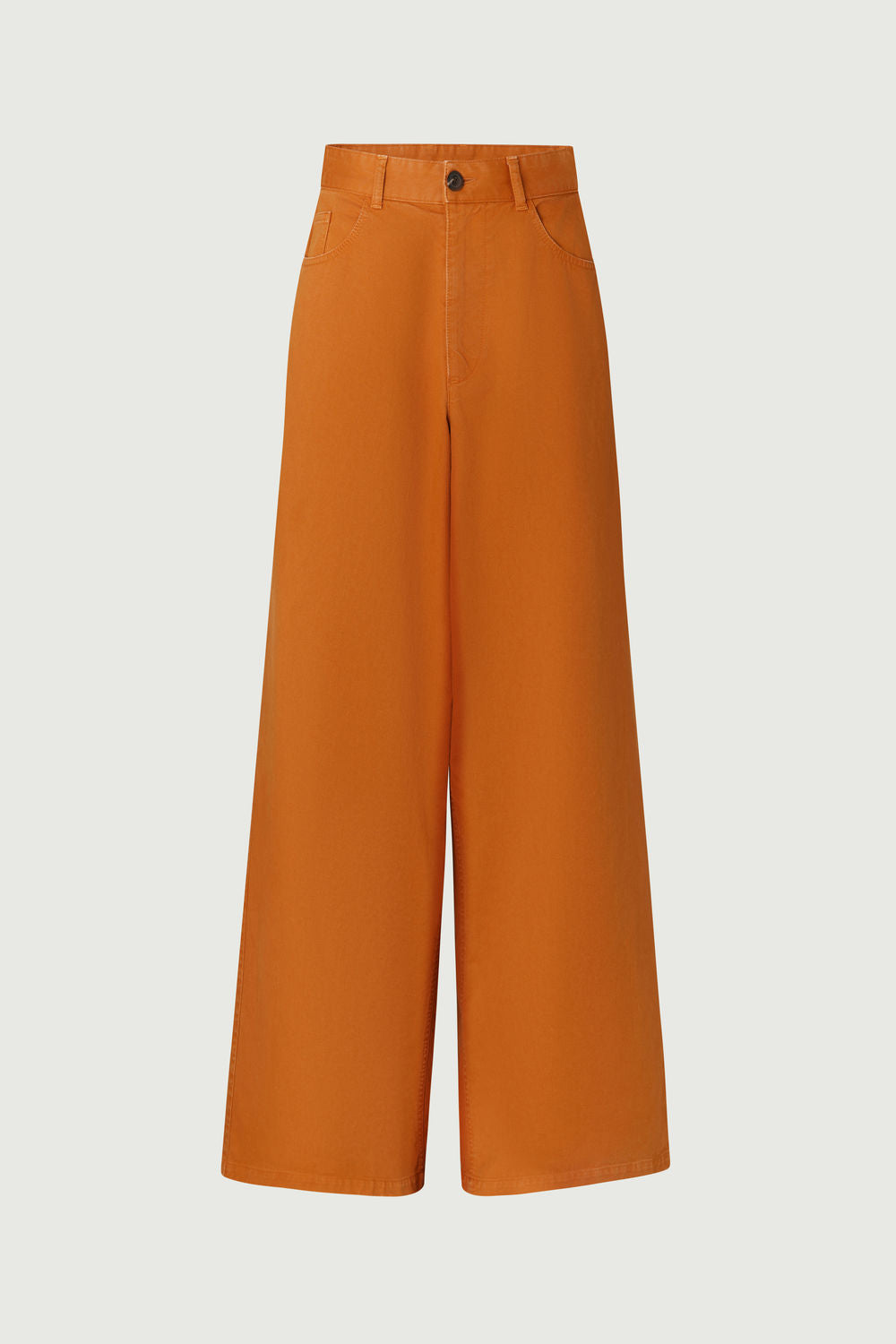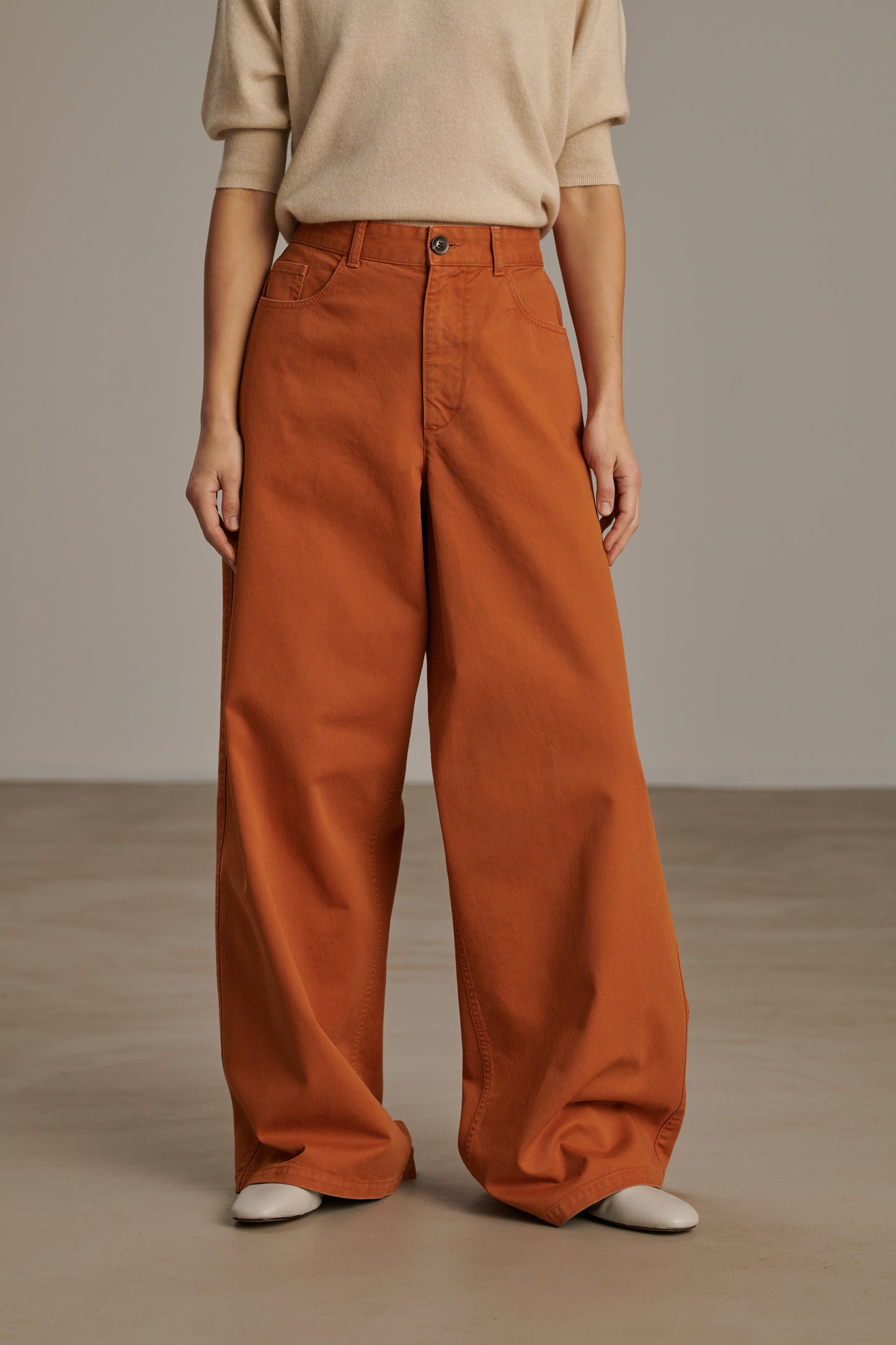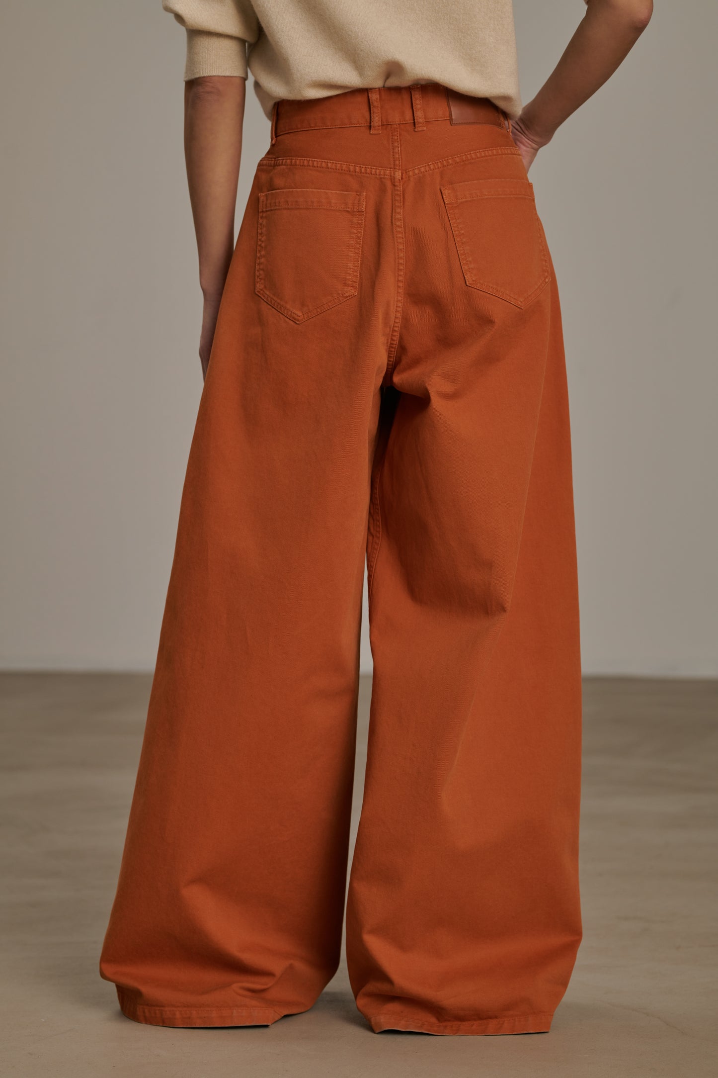 ALEXIS es un pantalón de tela gruesa con un corte holgado y acampanado. Su aspecto es desenfadado. Forma parte de los looks característicos de Sœur, donde se domina el oversize.
