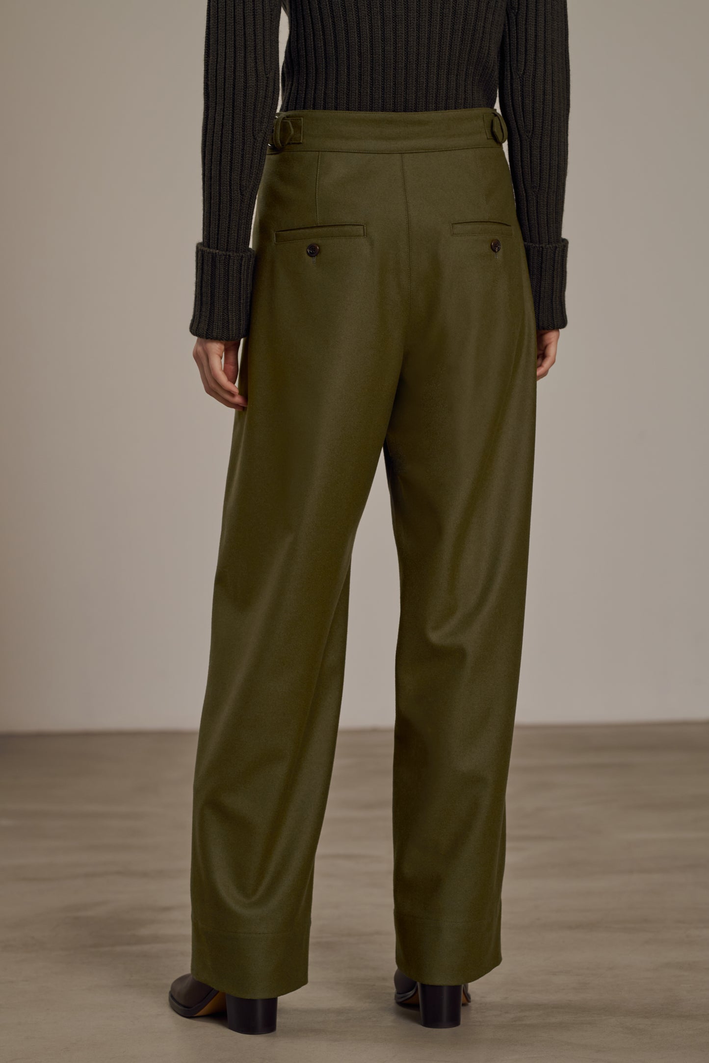 WALLY es un pantalón de talle alto. Sus tiras de ajuste permiten ajustar la cintura. Un gran dobladillo permite llevarlo vuelto para una silueta bien recta, o desdoblado para una silueta oversize y desenfadada. En franela de lana, suave y flexible, es perfecto para el pleno invierno.
