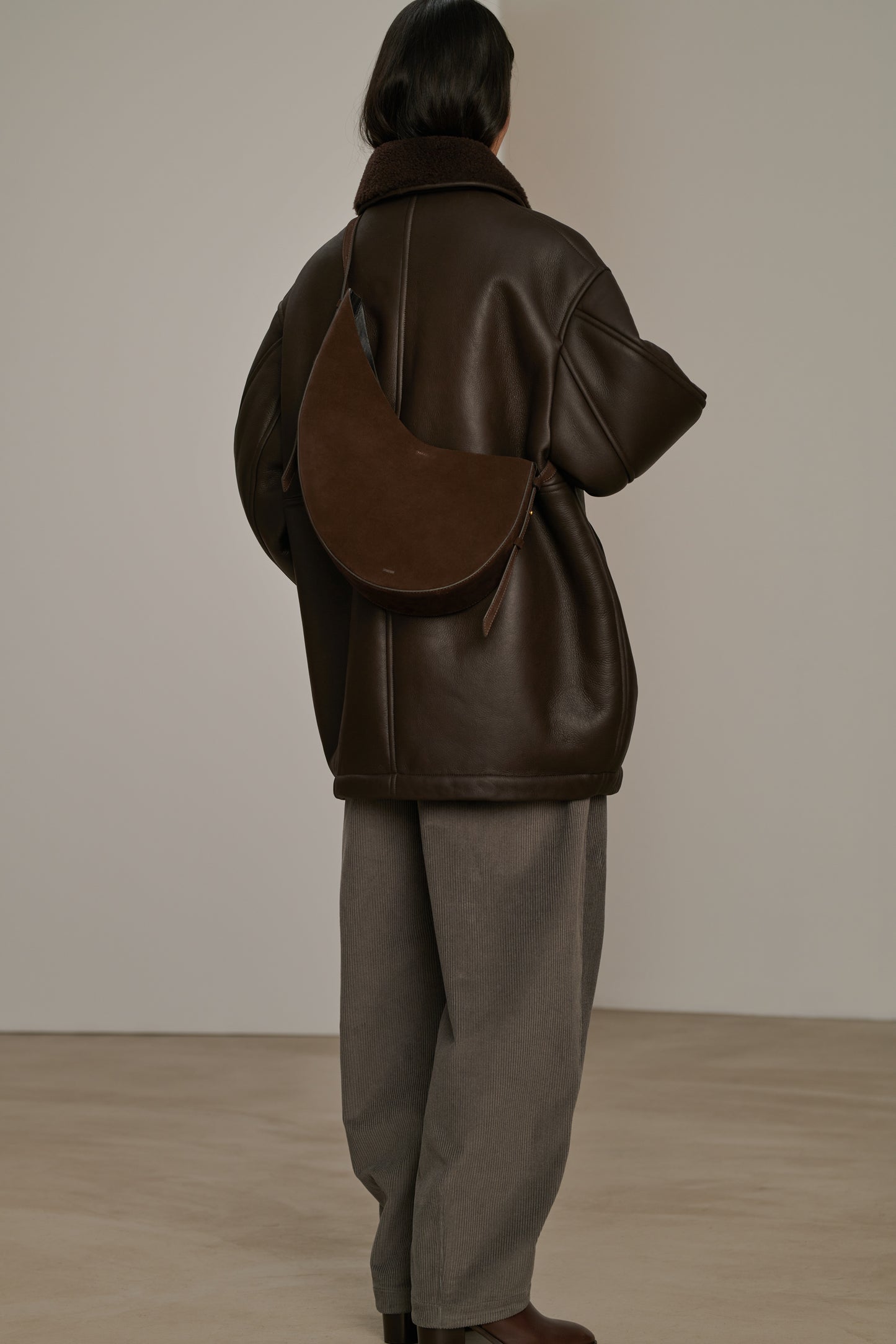 Bolso en cuero de ante marrón oscuro marrón oscuro